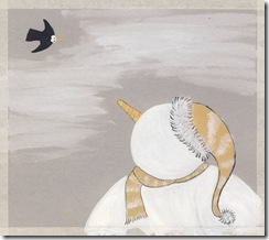 Questa volta l'idea era di lavorare con la china bianca su carta scura, purtoppo non ho trovato una china abbastanza coprente e ho dovuto lavorare con l'acrilico.. ho preparato una serie di 5 illustrazioni per una storiella breve e poi ho provato a rifare la stessa immagine su due carte diverse...
